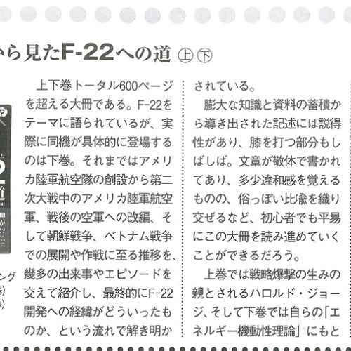 文林堂さんが発行する「航空ファン」2020年6月号のBOOK REVIEWコーナーにて、『アメリカ空軍史から見た F-22への道』(夕撃旅団・著)をご紹介いただきました。 ありがとうございました。